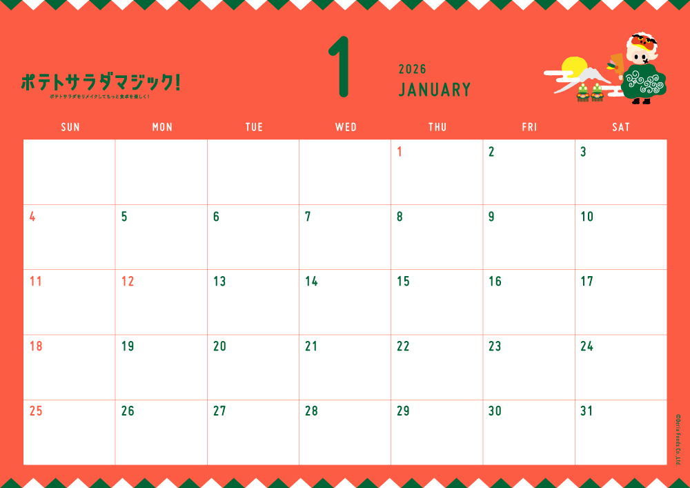 カレンダー(壁紙) 2026.1