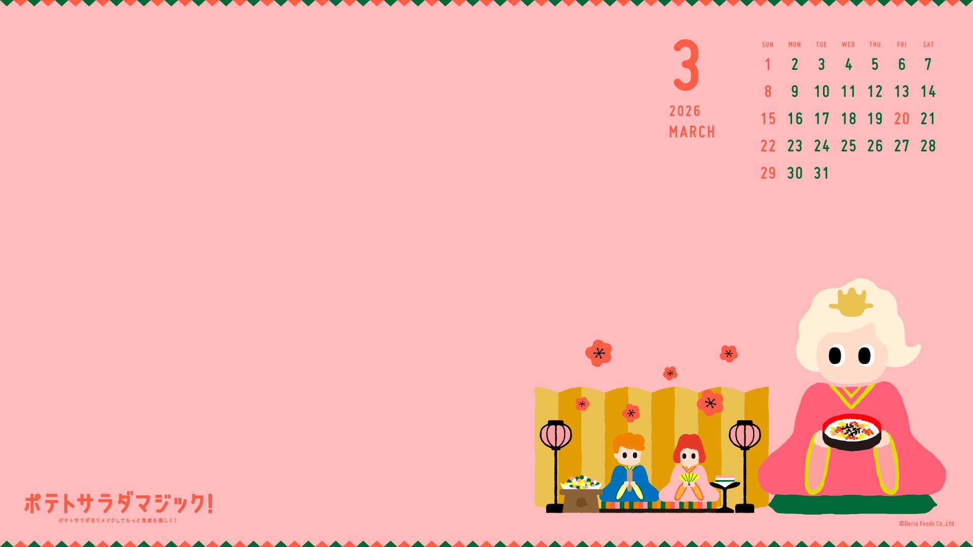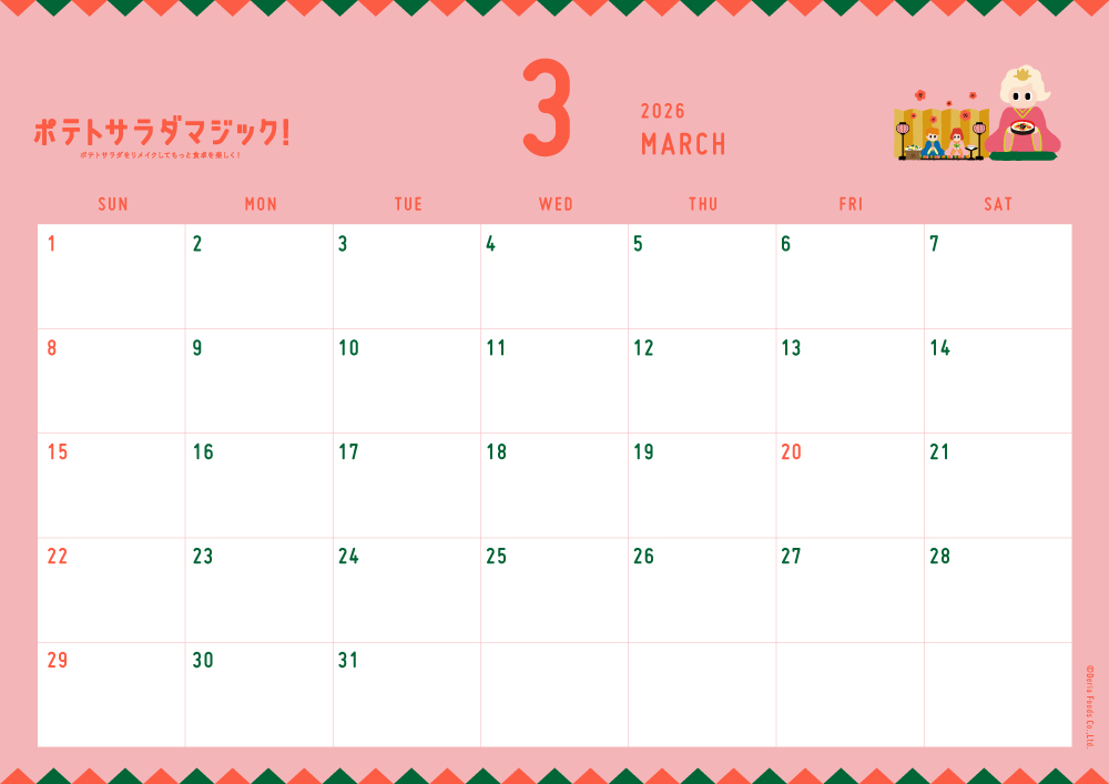 カレンダー(壁紙) 2026.3