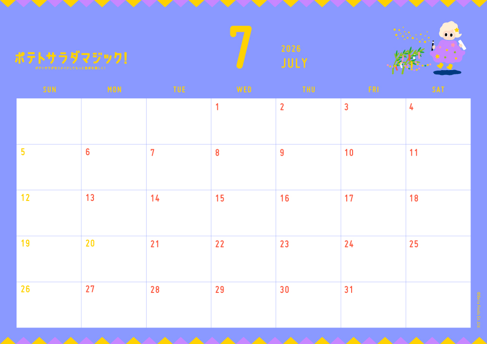 カレンダー(壁紙) 2026.7